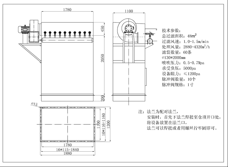 倉(cāng)頂脈沖除塵器結(jié)構(gòu)圖紙: