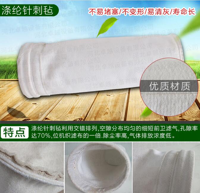 抗水防油滌綸針刺氈除塵布袋是針刺尼利用疏水劑和疏油劑經(jīng)浸軋,預(yù)烘,焙烘處理而形成的.疏水劑和疏油劑經(jīng)迅速烘干后,以圓狀包附于濾料纖維的表面,從而減少了水和油與濾袋的表面張力,這樣水,油和粉塵形成的濕性過濾介質(zhì)_不會粘附于濾袋的表面,從而避免了糊袋現(xiàn)象.拒水防油針刺尼通常是在除塵器箱體溫度低于露點(diǎn)溫度,含塵氣體的濕度又較大的情況下使用.